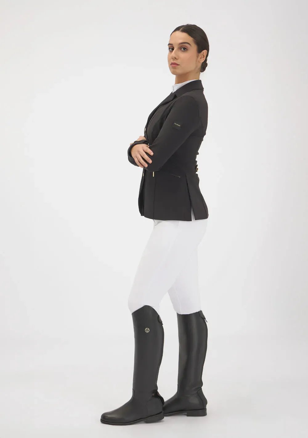 • Flattering silhouette: Clean, structured design that enhances the rider’s figure.